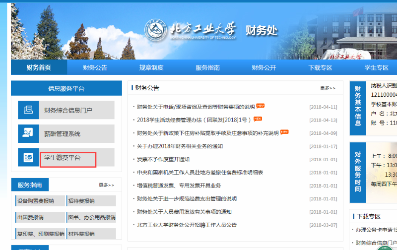 (2)登录澳门电子pg游戏官网收费服务平台(http://sites.ncut.edu.cn/bfgycwc/),进入学生缴费界面。