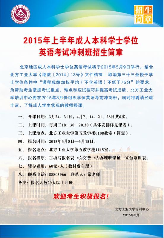 关于举办2015年【专升本考前辅导班】的通知