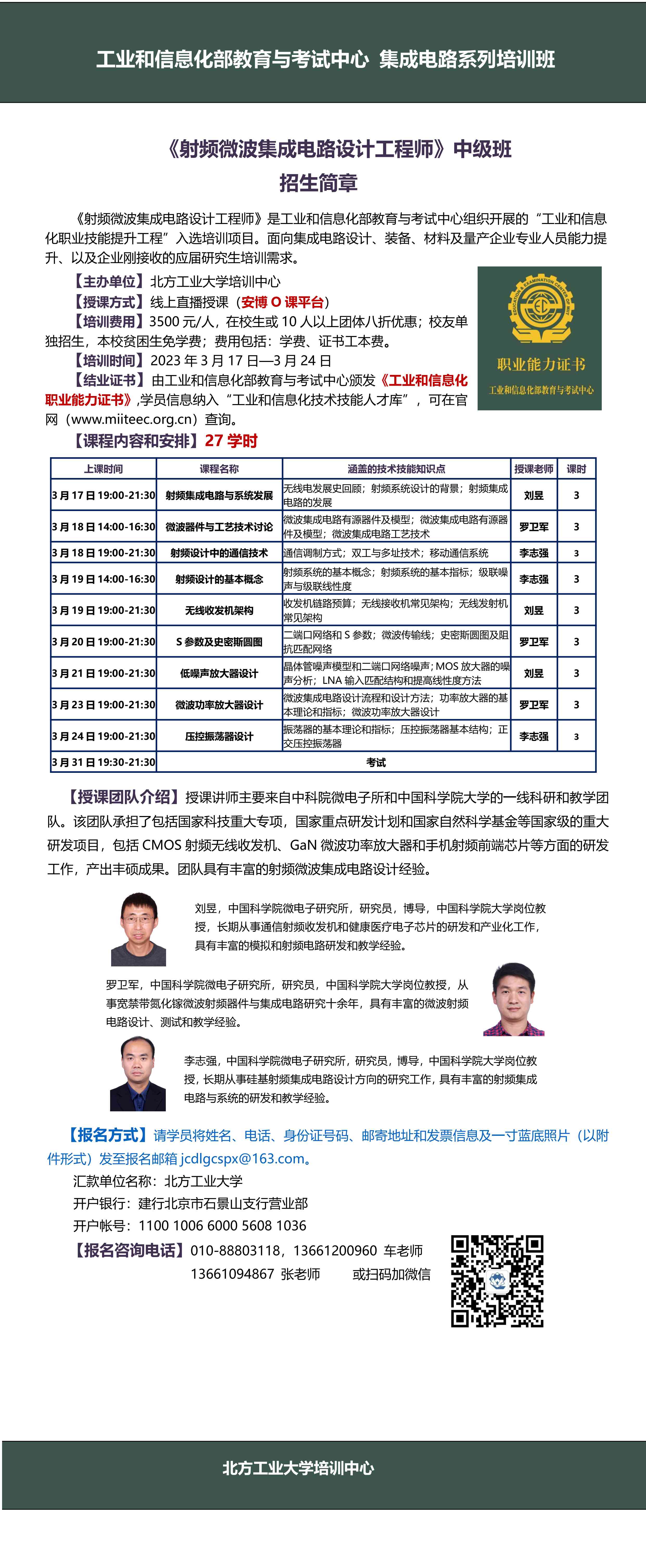 《射频微波集成电路设计工程师》中级班招生简章